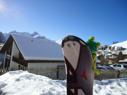 | Frisch gestärkt nimmt Söt anderntags sein grösstes Wagnis in Angriff: der winterlichen Erstbesteigung des weitherum gefürchteten Piz Kaulquappus, dem selbst Bergsteigerkoryphäen wie z.B. Reinhold Froschner oder Froschai Lama mit allergrösstem Respekt begegnen. |